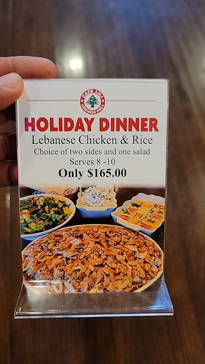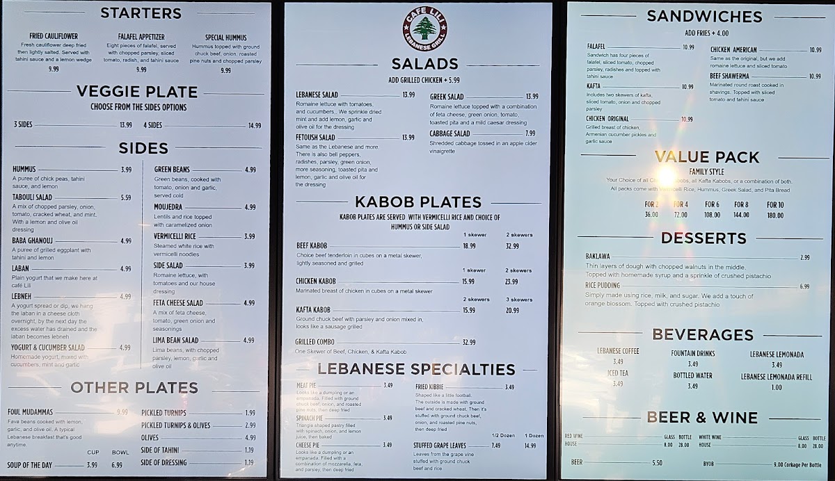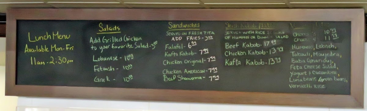 Choose Beef or Chicken Sandwich, served with Hummus, Toasted Pita and Baklawa